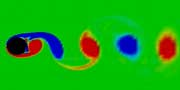 Above: our realistic physics simulation of a cylinder with active skin (with 16 actuators) moving through liquid. Goal: minimize drag by learning to create actuator movements that counteract the creation of vortices in the wake. Unprecedented success - see ref 10 (scroll down).