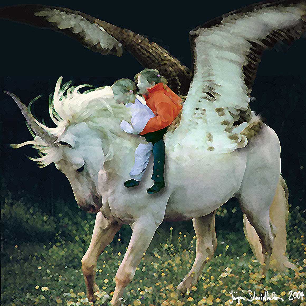 Bottom: Schmidhuber's Daughters Riding the Pegasus Unicorn, 2004